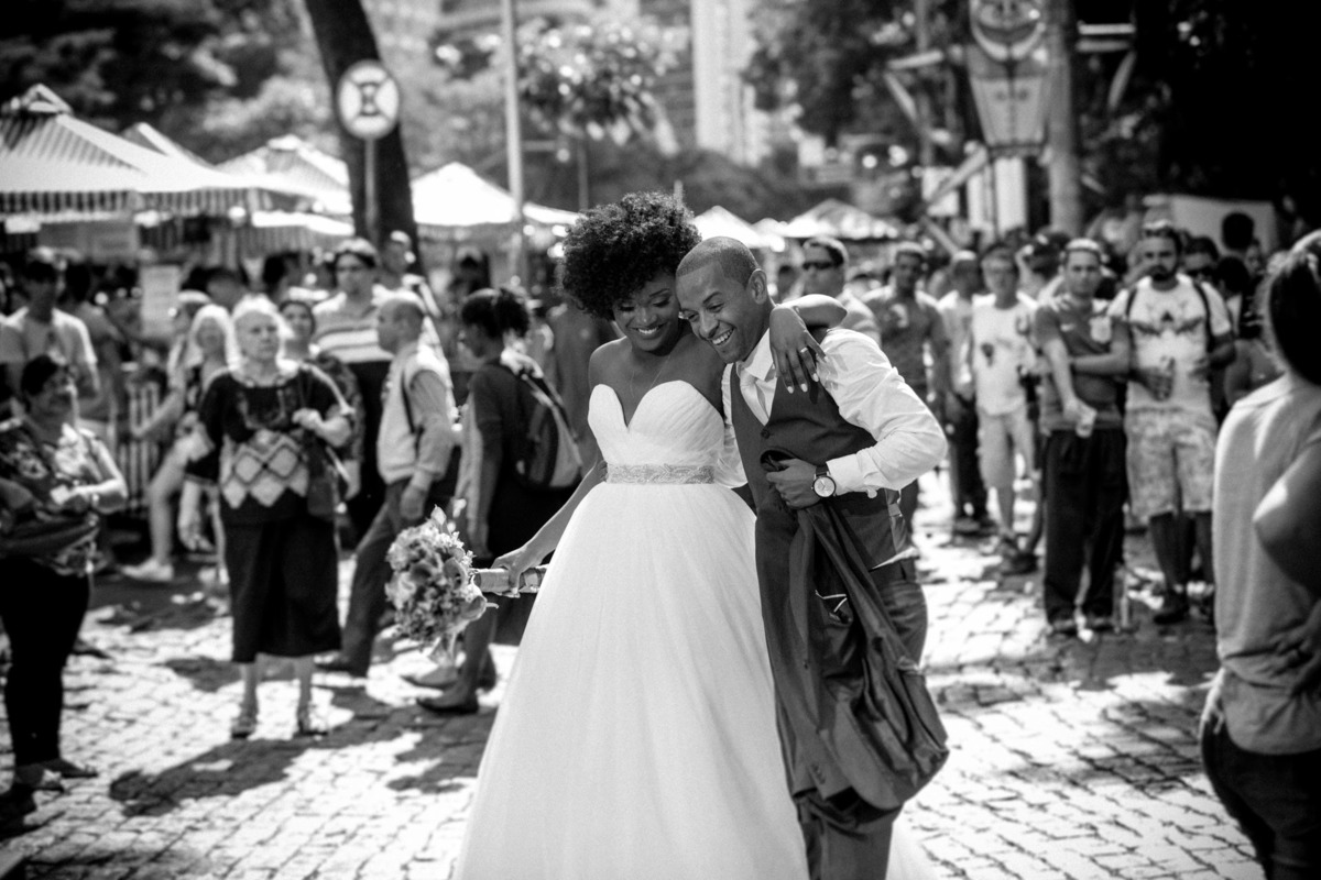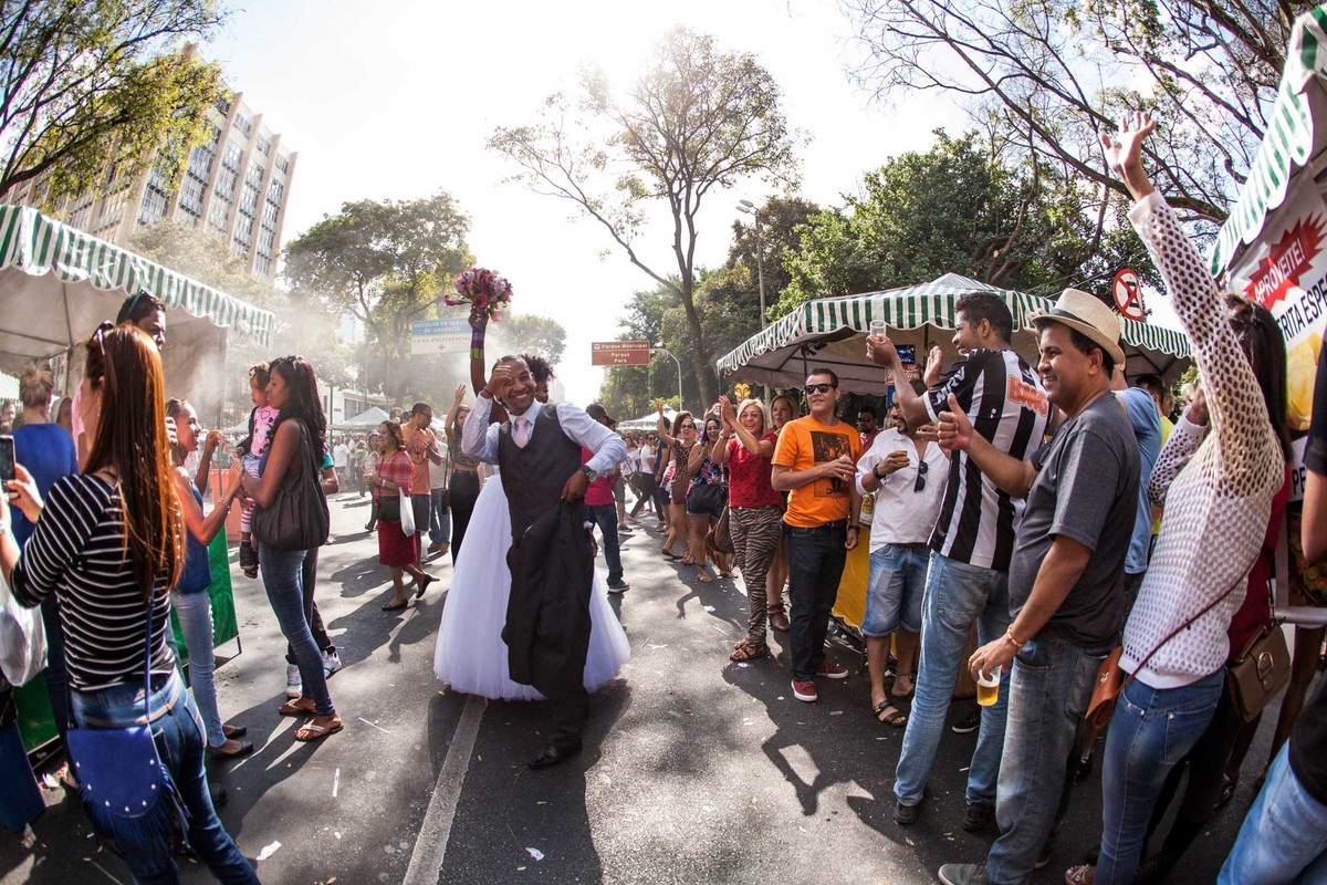 Um banho de simplicidade e personalidade. Luana & Ary queriam um ensaio no meio de muita gente, com muita festa, além do fator inusitado. O cenário: a maior feira permanente de artesanato de Minas Gerais, a famosa Feira Hippie. Visita obrigatória de turistas conhecendo Belo Horizonte, tradição dominical de tantos mineiros, o local não poderia ser melhor. Uma multidão de pessoas ficou surpresa, algumas sem acreditar que se tratava de um ensaio real, de uma noiva real. Uma criança chegou a olhar perplexa crendo que a Luana tinha saído dos contos de fada!!! Muitas risadas, energia de sobra e um festival de simpatia dos noivos e das pessoas com seu momento de vida. Intenso, colorido e inusitado...